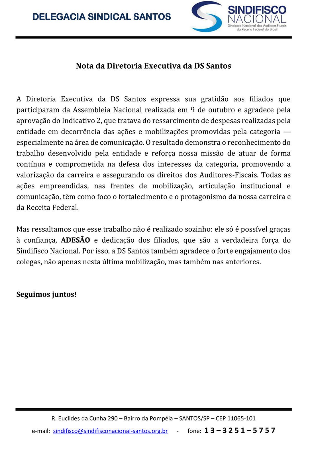 Nota da Diretoria Executiva da DS Santos